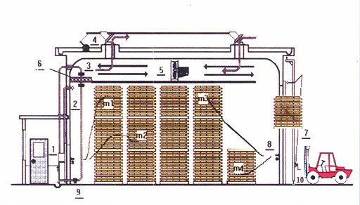 干燥窯是以蒸汽為熱源,濕空氣為介質(zhì),通過控制干燥介質(zhì)的參數(shù)科學(xué)的對(duì)木材進(jìn)行干燥處理。采用蒸汽加熱可實(shí)現(xiàn)的窯內(nèi)溫、濕度控制從而獲得干燥質(zhì)量好、含水率均勻的木材干燥產(chǎn)品。